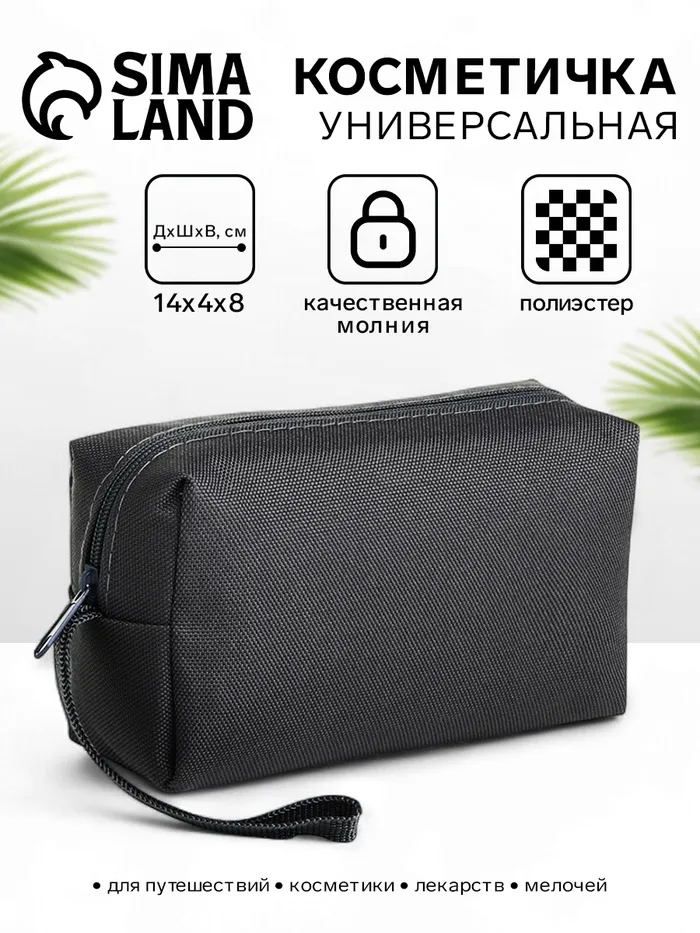 Косметичка дорожная на молнии, с ручкой, серая — Характеристики