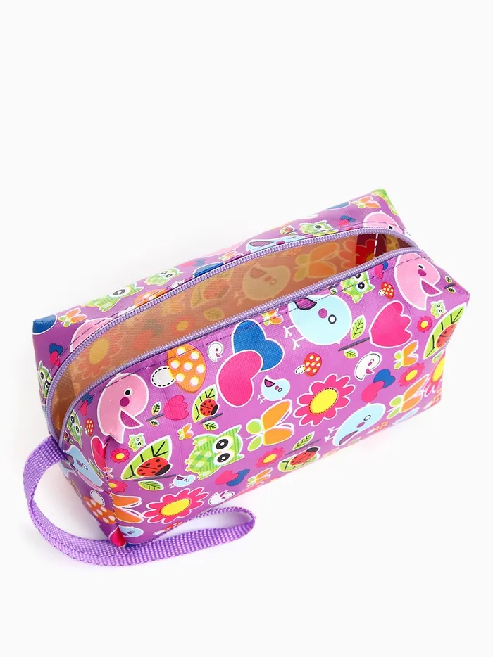 Косметичка дорожная на молнии, с ручкой, цвет фиолетовый/разноцветный — Характеристики
