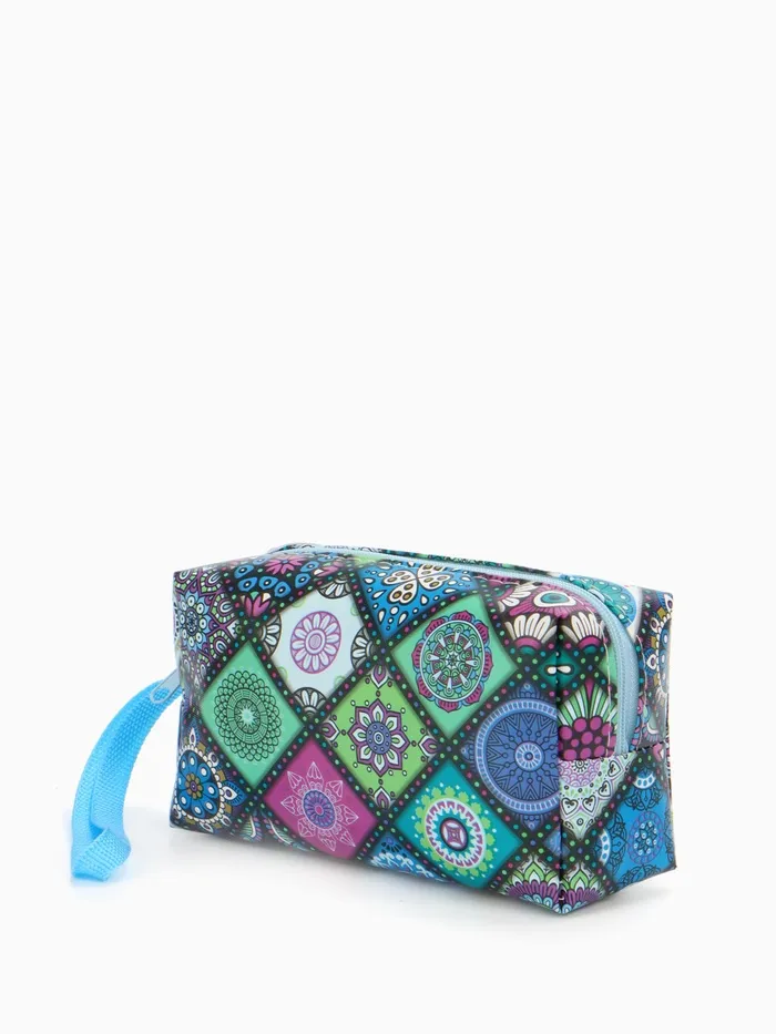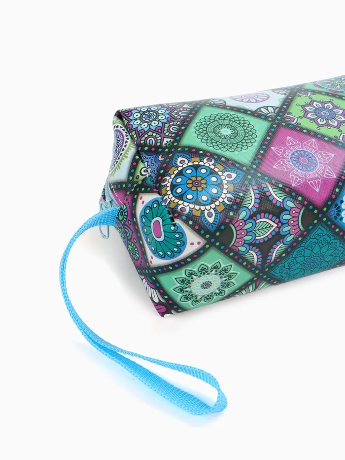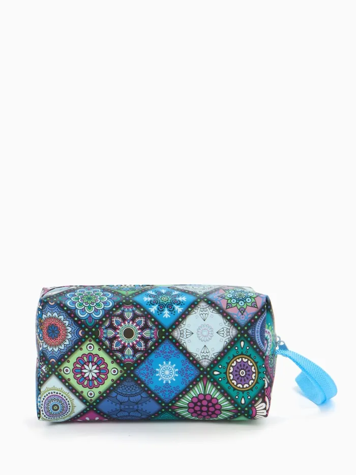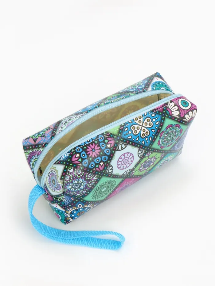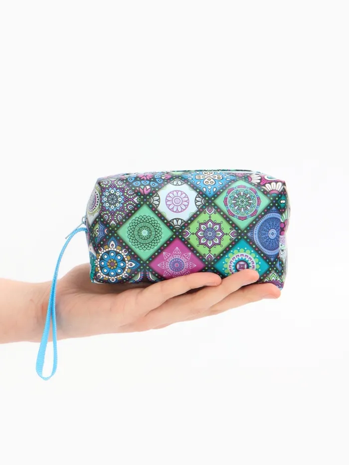 Косметичка дорожная на молнии, с ручкой, цвет синий/разноцветный — Характеристики