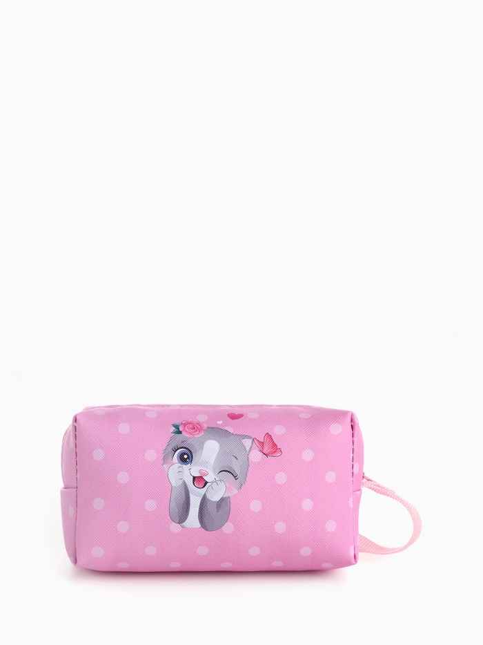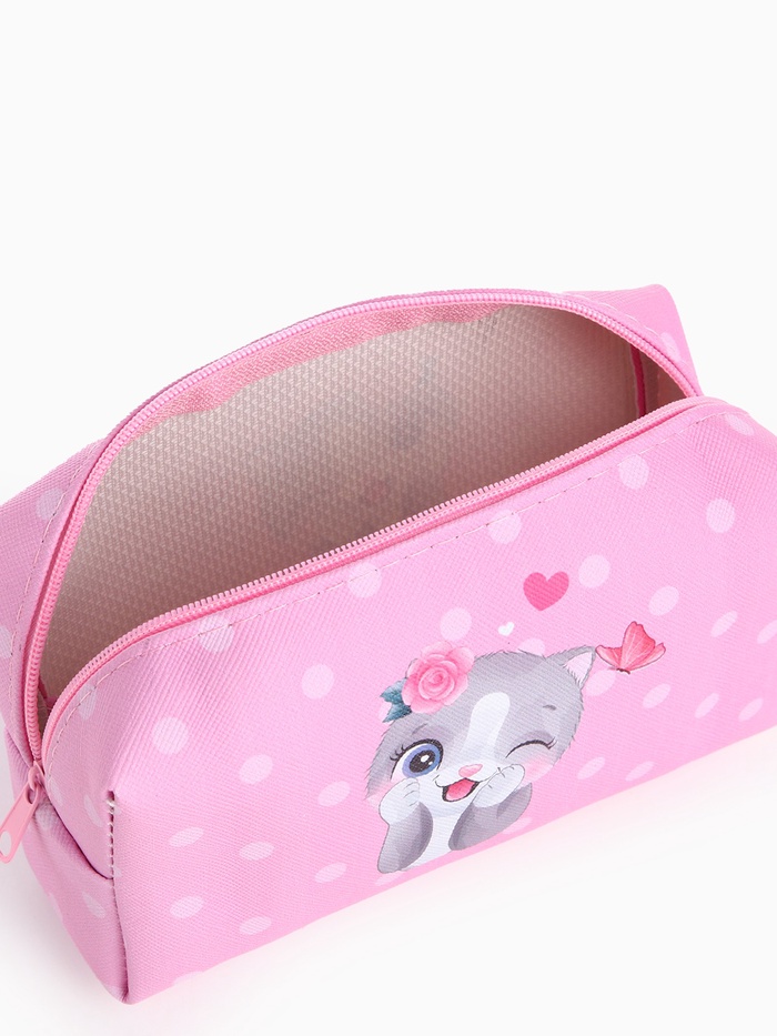 Косметичка-футляр женская с ручкой, объёмная, маленькая, для косметики, лекарств, прокладок, «Милая кошка», розовый — Характеристики