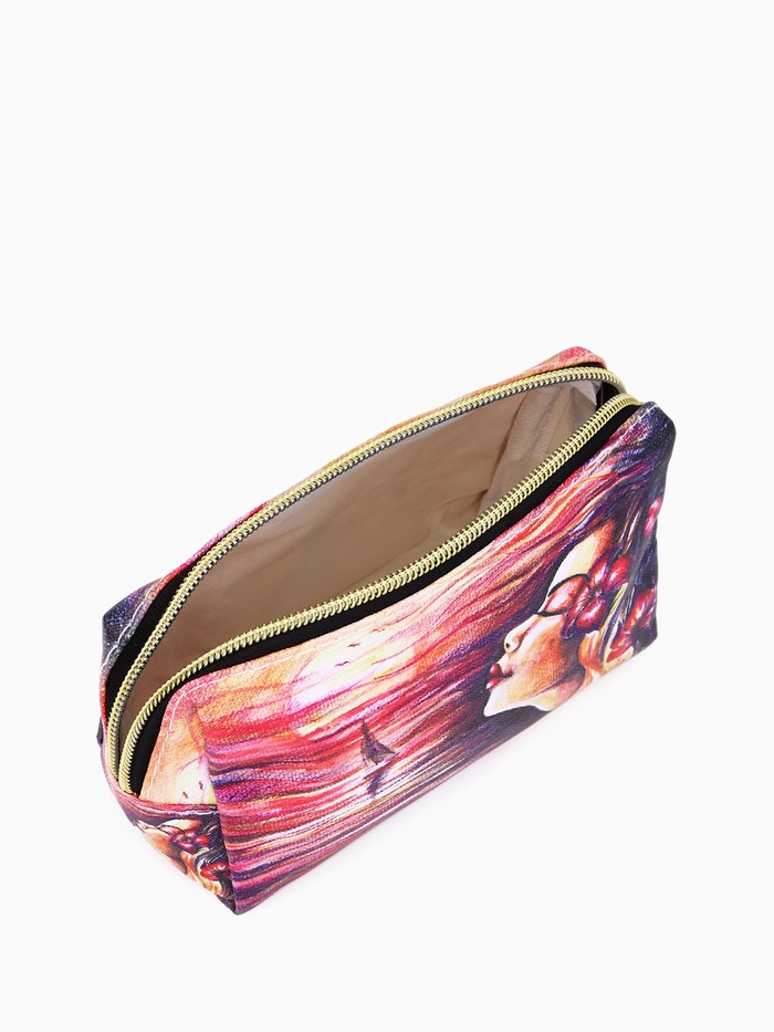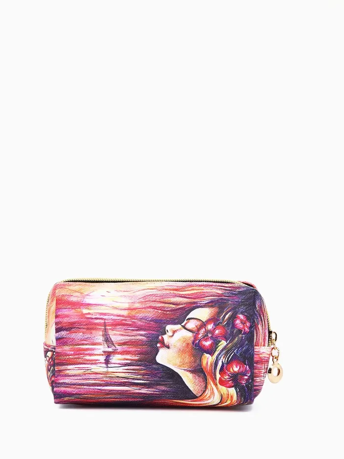 Косметичка-футляр женская с ручкой, объёмная, маленькая, для косметики, лекарств, прокладок, «Море и девушка» розовый/разноцветный — Характеристики