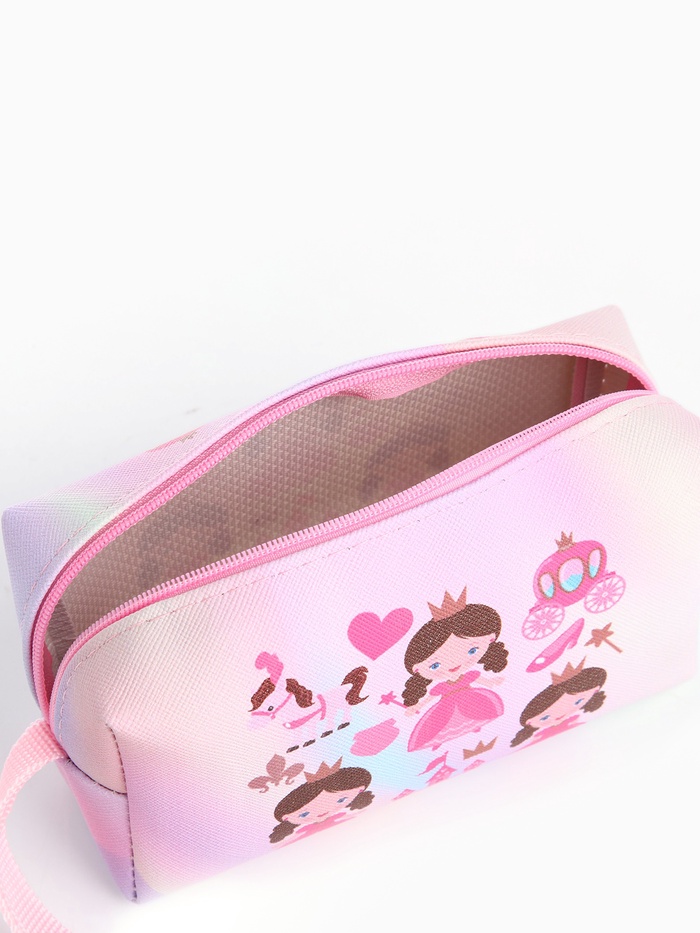 Косметичка-футляр женская с ручкой, объёмная, маленькая, для косметики, лекарств, прокладок, «Золушка», розовый — Характеристики