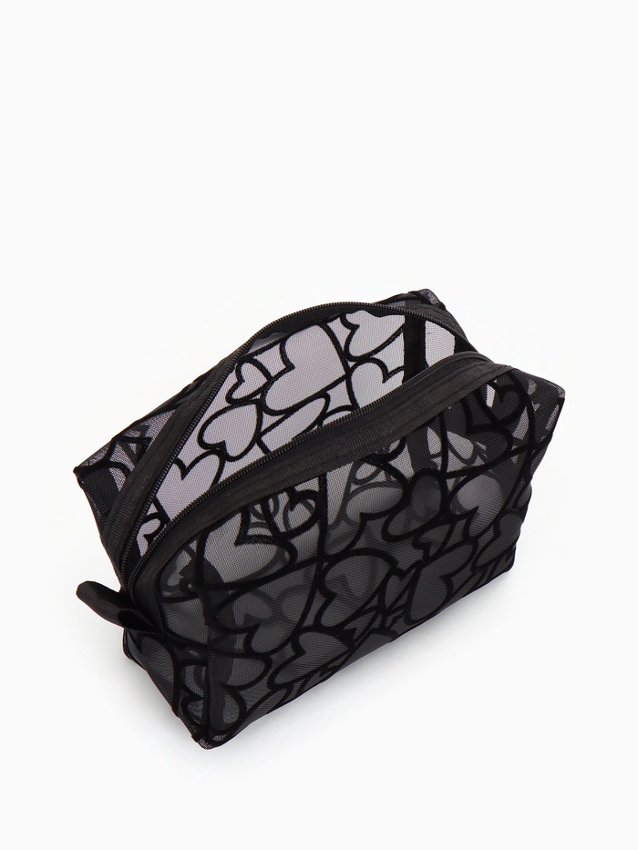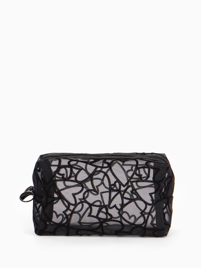 Косметичка квадратная Black beauty, с рисунком, на молнии, чёрная — Характеристики