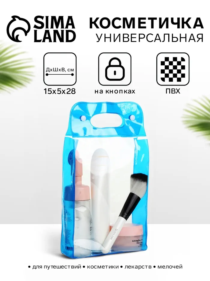Косметичка на кнопках для бассейна, с ручками, прозрачный/голубой — Характеристики