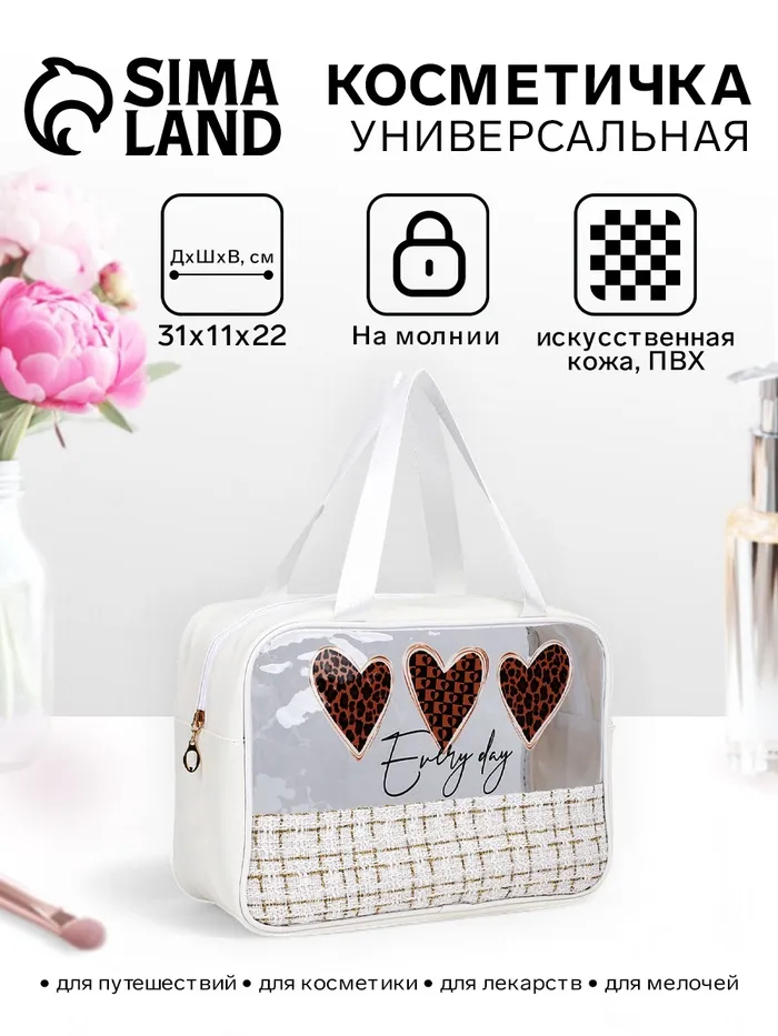 Косметичка на молнии для бассейна, большая, с ручками, с принтом Every day, белый — Характеристики