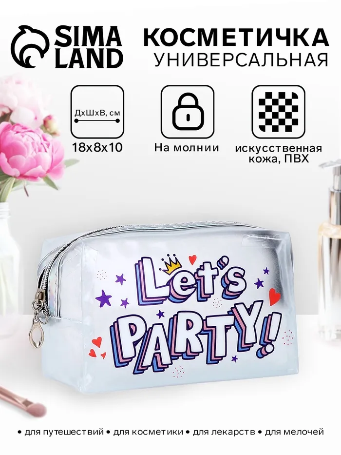 Косметичка на молнии для бассейна, матовая, с принтом Party, разноцветный — Характеристики