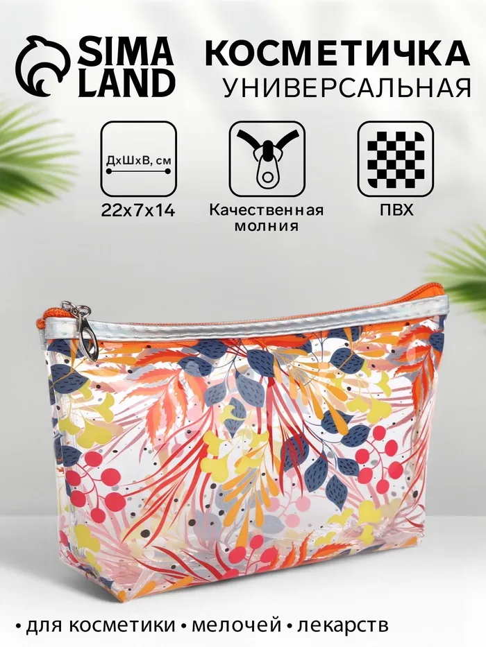 Косметичка на молнии для бассейна, с принтом «Флора», прозрачный/оранжевый — Характеристики