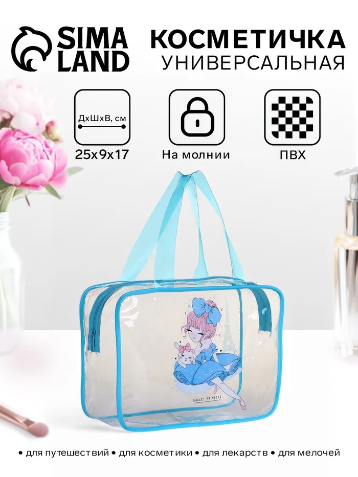 Косметичка на молнии для бассейна, с ручками, с принтом «Балерина», голубой — Характеристики