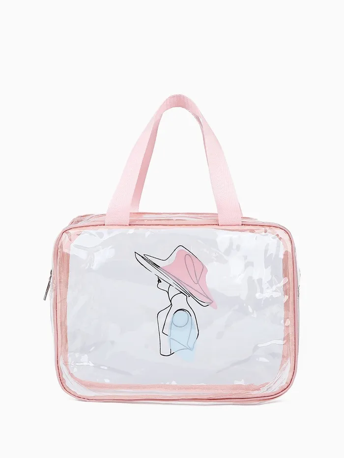 Косметичка на молнии для бассейна, с ручками, с принтом «Дама», розовый — Характеристики
