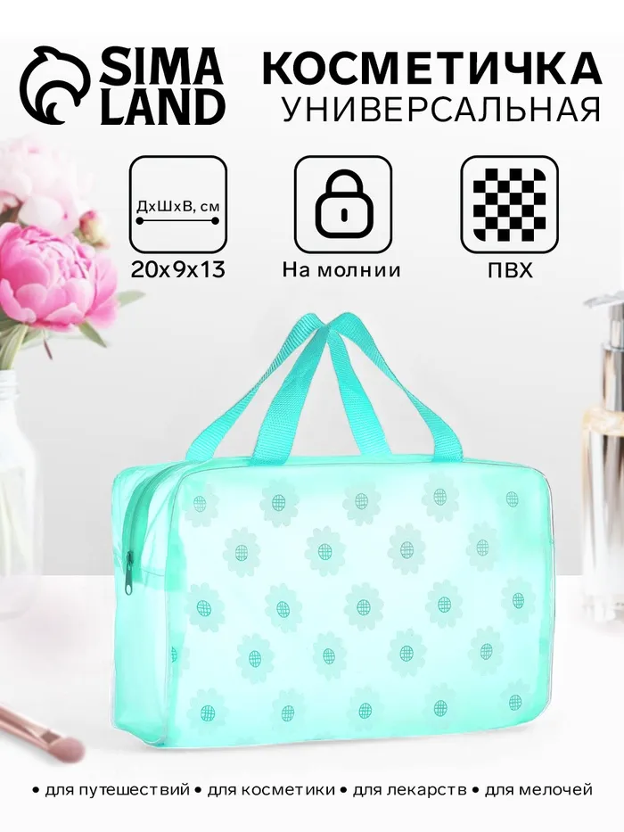 Косметичка на молнии для бассейна, с ручками, с принтом «Подсолнухи», зелёный — Характеристики