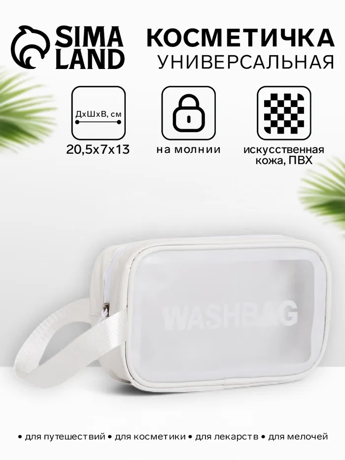 Косметичка на молнии для бассейна, с ручкой, матовая, с принтом Washbag, белый — Характеристики