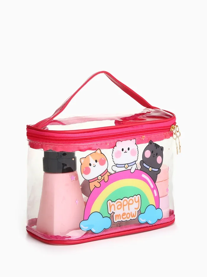 Косметичка на молнии для бассейна, с ручкой, с принтом Happy, розовый — Характеристики