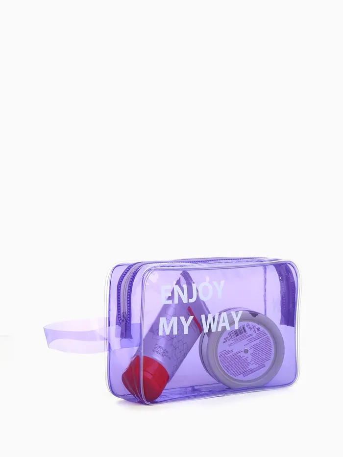 Косметичка на молнии для бассейна, с ручкой, с принтом, прозрачная/фиолетовая — Характеристики
