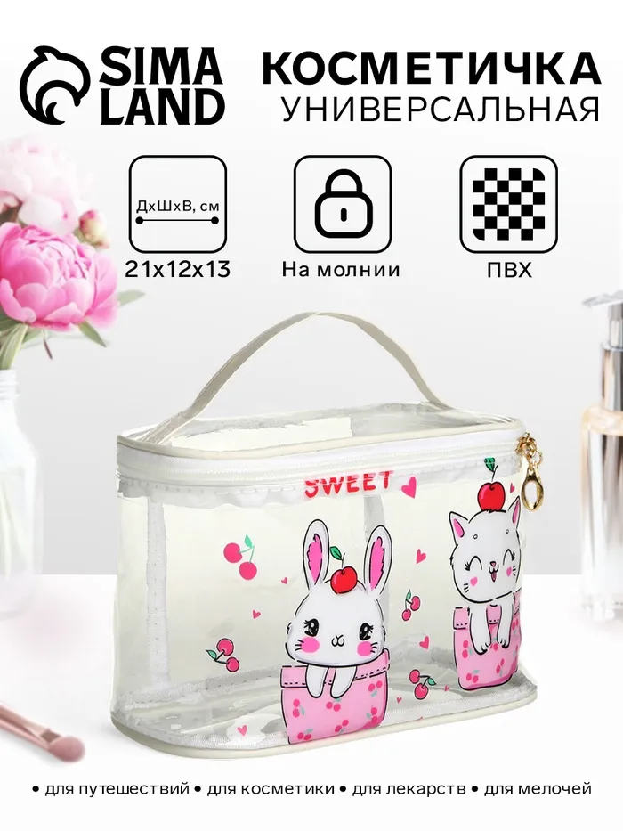 Косметичка на молнии для бассейна, с ручкой, с принтом Sweet, белый — Характеристики