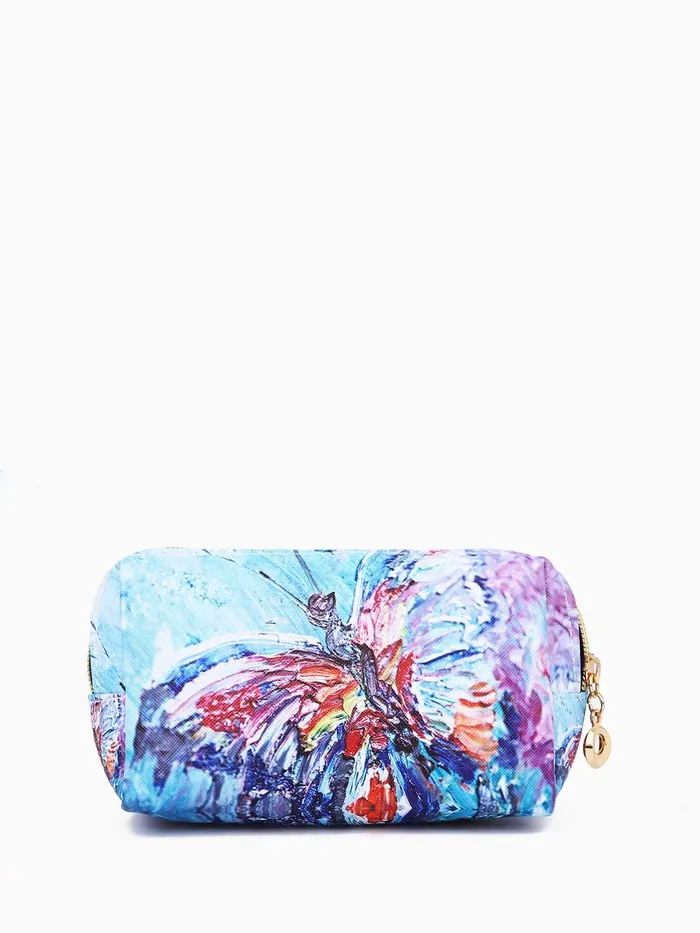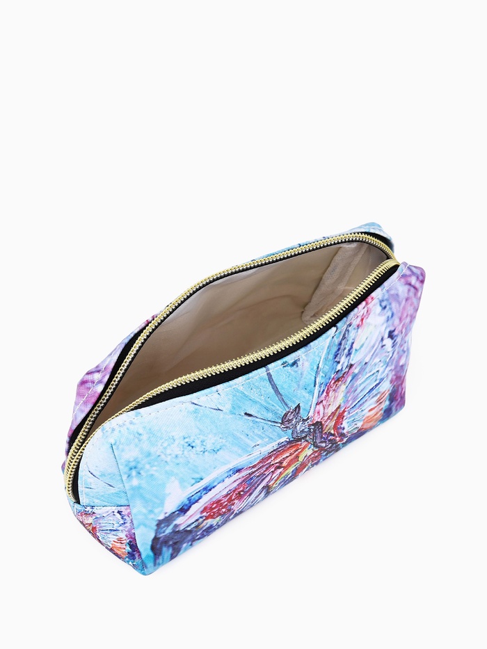 Косметичка на молнии, маленькая, с рисунком «Живописная бабочка» голубой/разноцветный