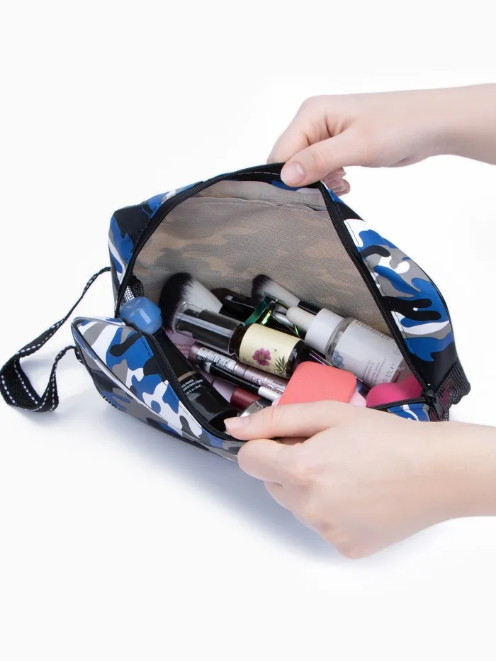 Косметичка на молнии мужская, с ручкой, с принтом, синяя — Характеристики