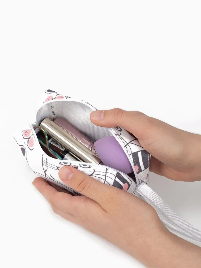 Косметичка на молнии объёмная, маленькая, с принтом, белая — Характеристики