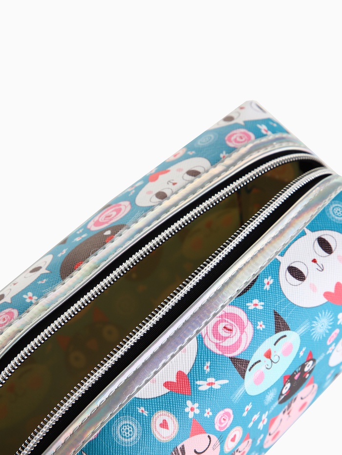 Косметичка на молнии объёмная, маленькая, с принтом «Усатые коты», голубой — Характеристики