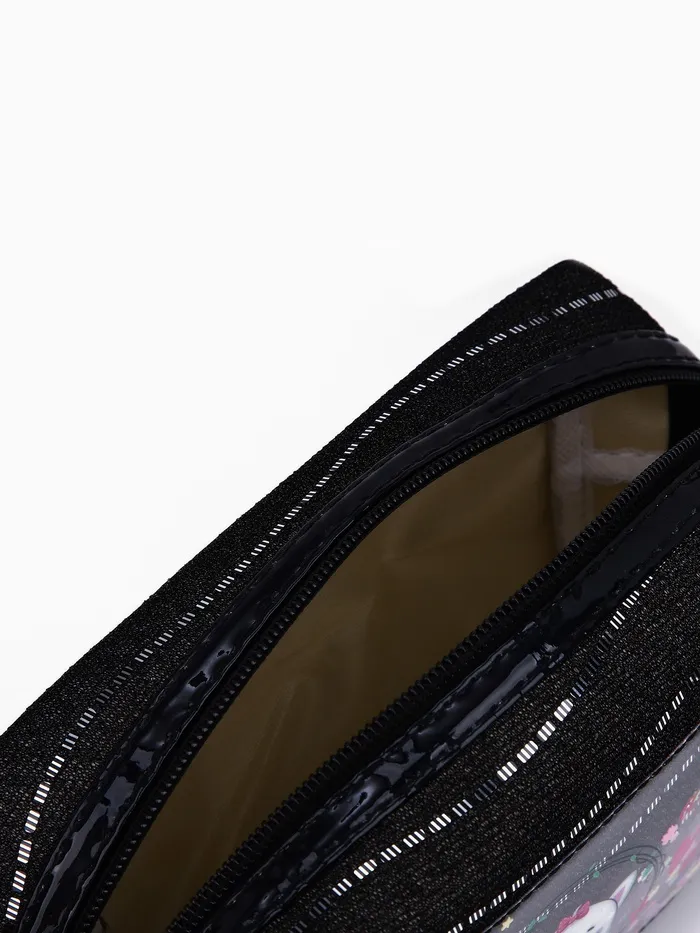 Косметичка на молнии объёмная, с ручкой, маленькая, с принтом, чёрная — Характеристики