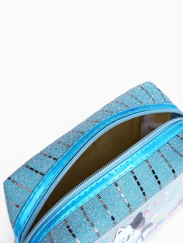 Косметичка на молнии объёмная, с ручкой, маленькая, с принтом, голубая — Характеристики