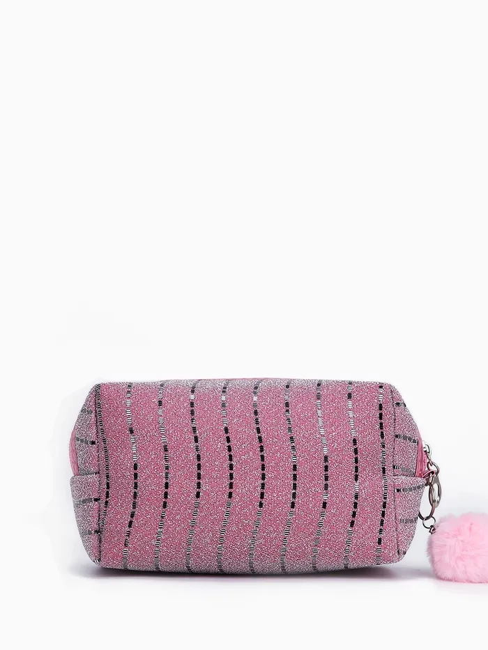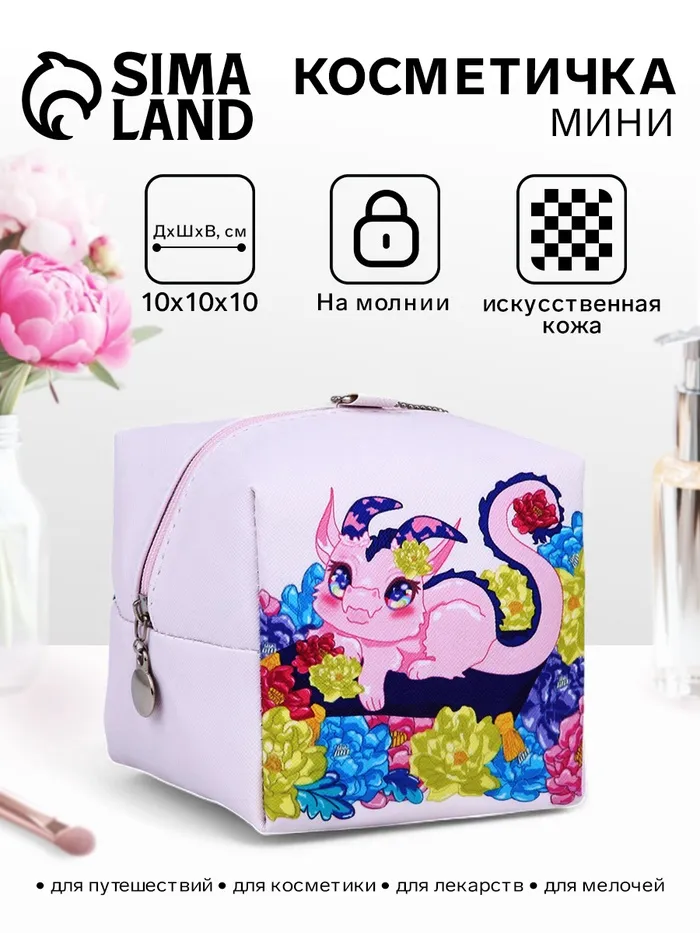 Косметичка на молнии объёмная, с ручкой, маленькая, с принтом, розовая — Характеристики