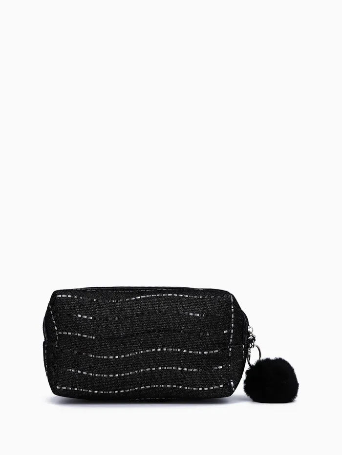 Косметичка на молнии объёмная, с ручкой, маленькая, с принтом, серебряная — Характеристики