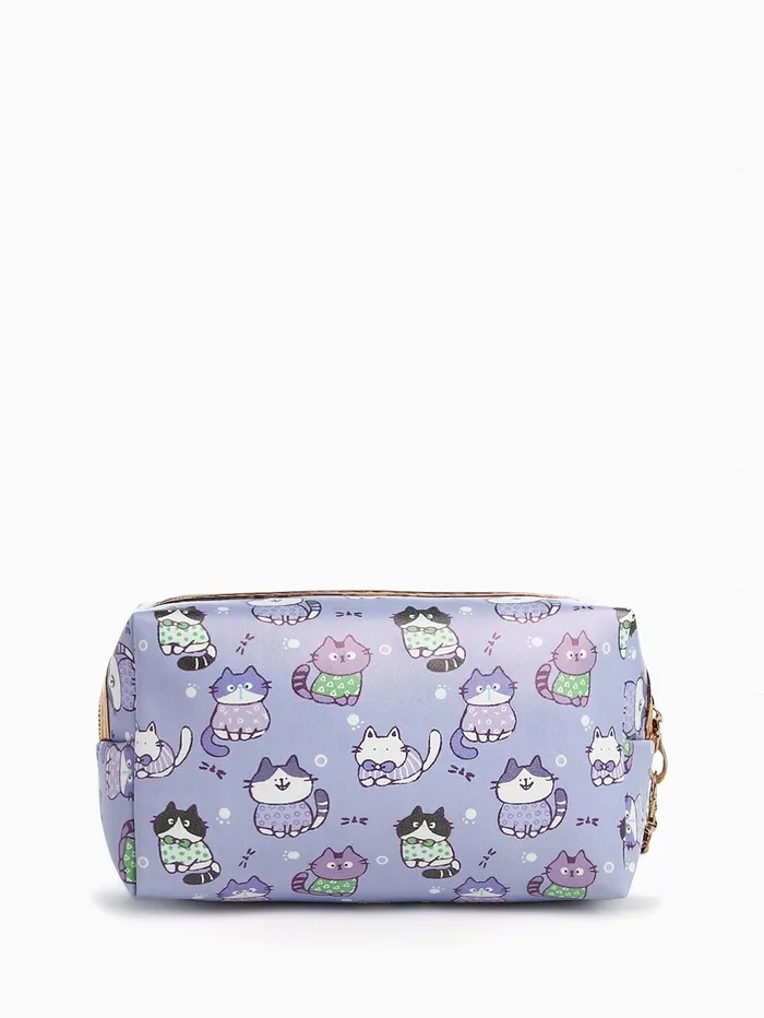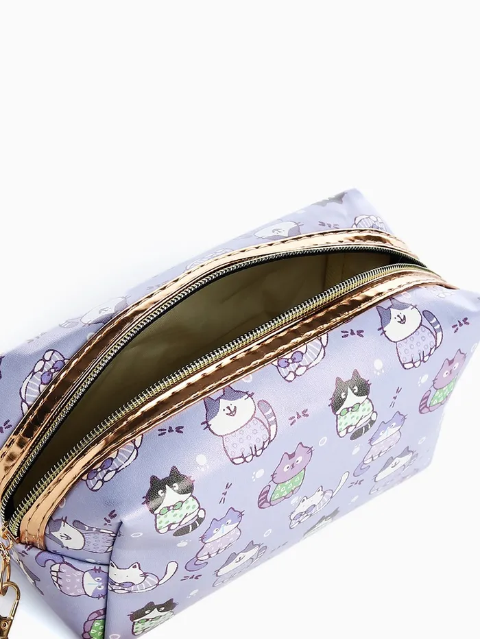 Косметичка на молнии объёмная, с ручкой, маленькая, с принтом, сиреневая — Характеристики