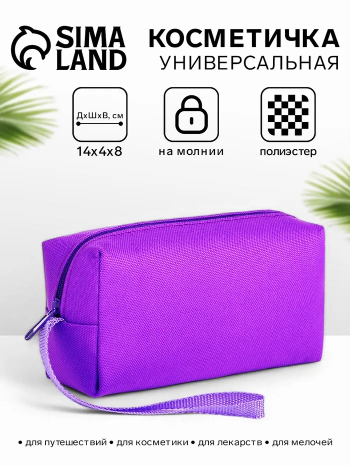 Косметичка на молнии объёмная, с ручкой, маленькая, сиреневый — Характеристики