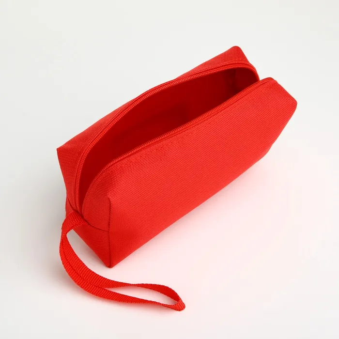 Косметичка на молнии, однотонная, с ручкой, красная — Характеристики