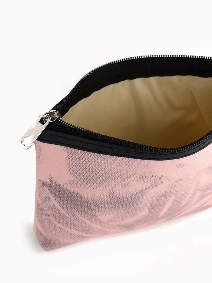 Косметичка на молнии плоская, с принтом, розовая — Характеристики