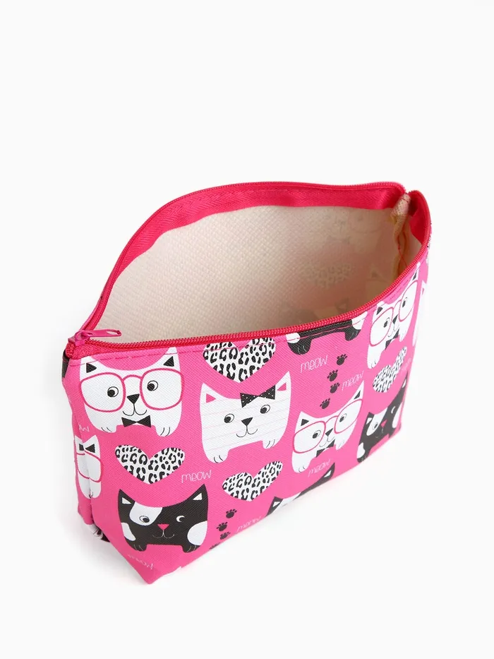 Косметичка на молнии простая, маленькая, с рисунком, малиновая — Характеристики