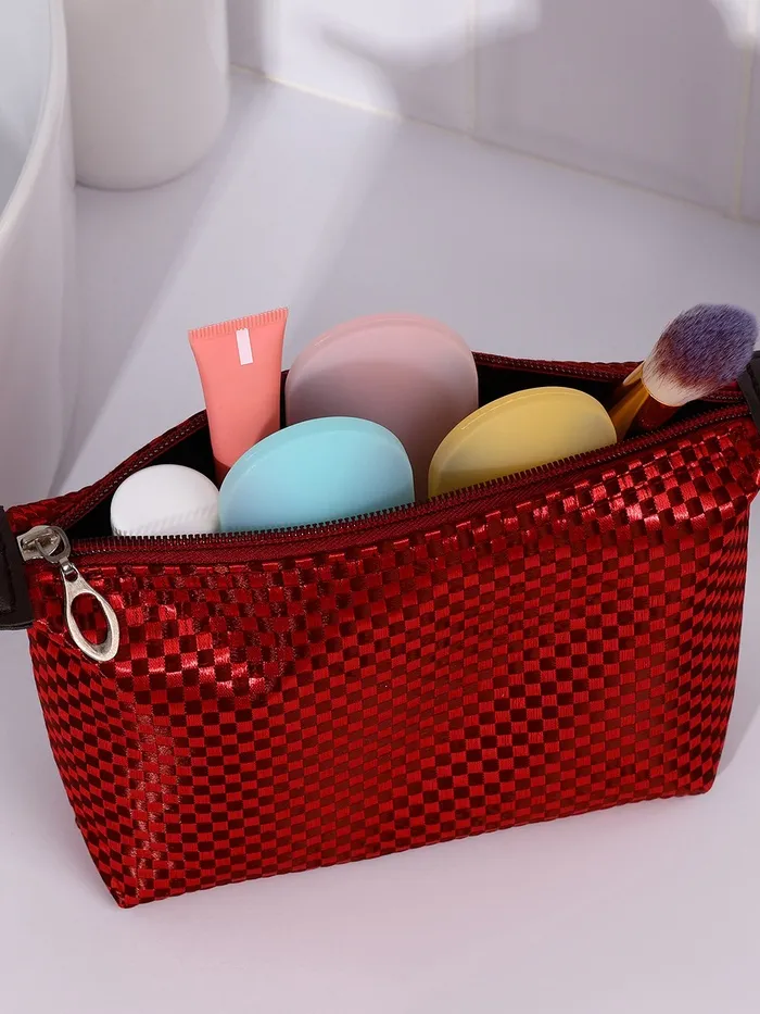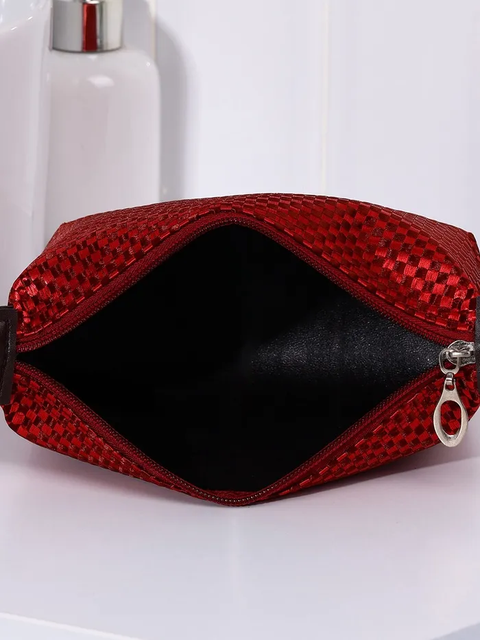 Косметичка на молнии простая, маленькая, в клетку, бордовая — Характеристики