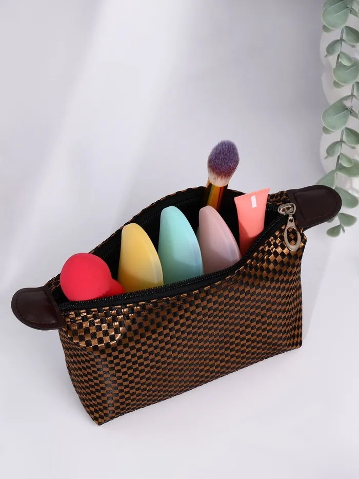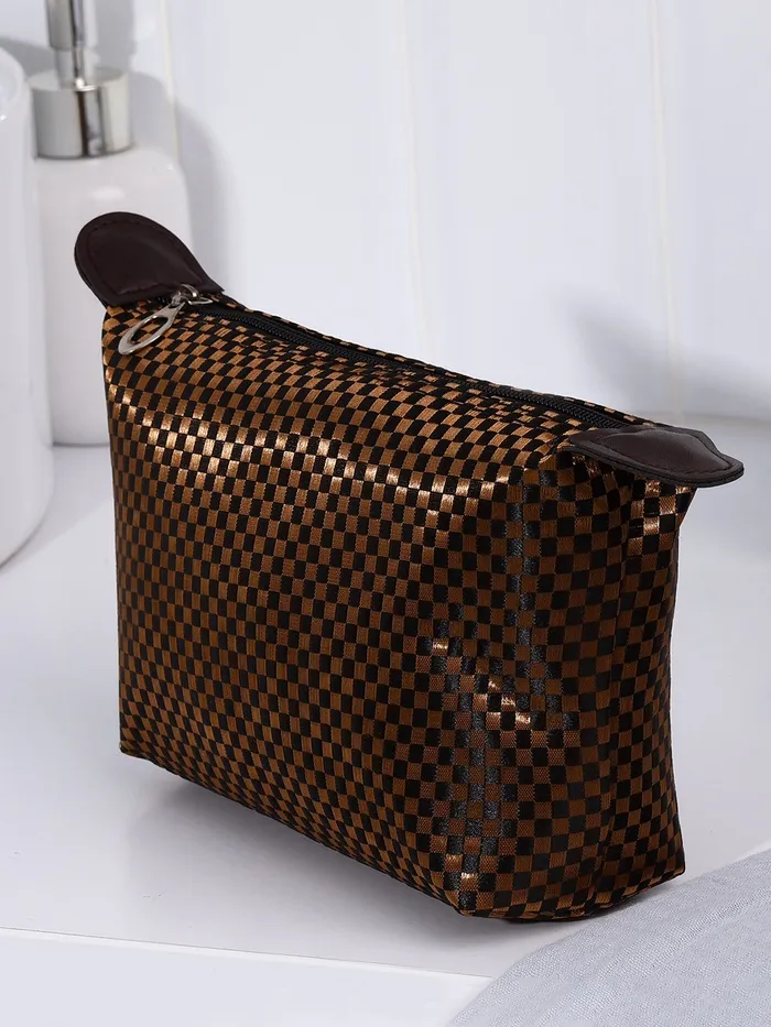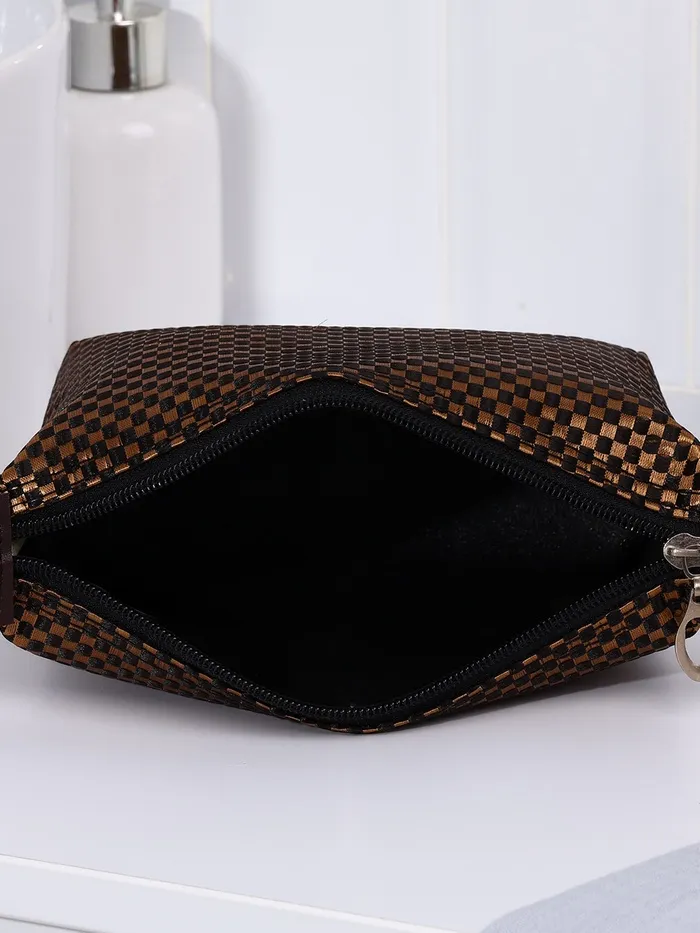 Косметичка на молнии простая, маленькая, в клетку, тёмно-коричневая — Характеристики