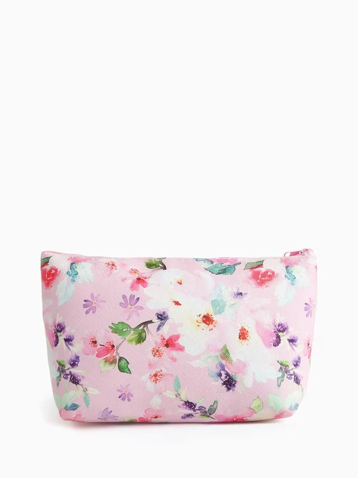 Косметичка на молнии простая, с рисунком, розовая — Характеристики