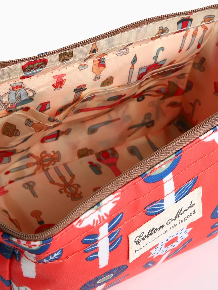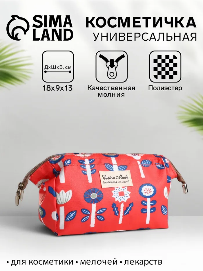 Косметичка на молнии, с подкладом, маленькая, с рисунком «Лесные растения», красный — Характеристики