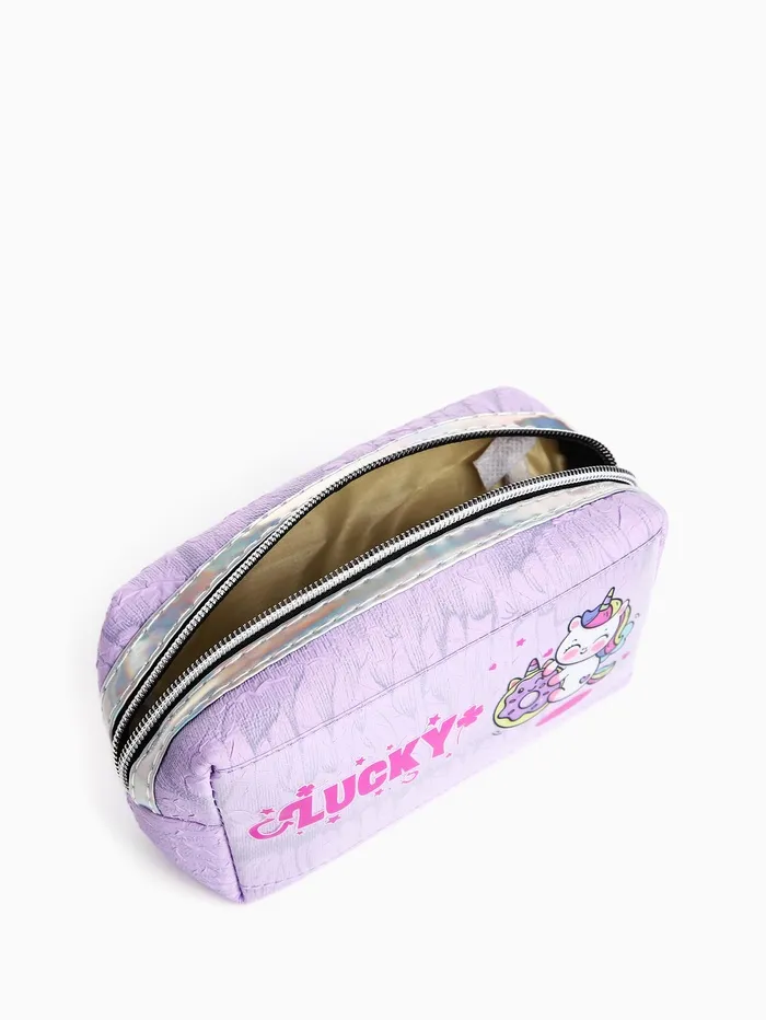 Косметичка на молнии, с подкладом, с принтом, сиреневая — Характеристики
