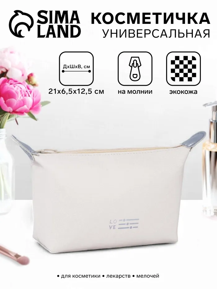 Косметичка на молнии, с подкладом, цвет бежевый — Характеристики