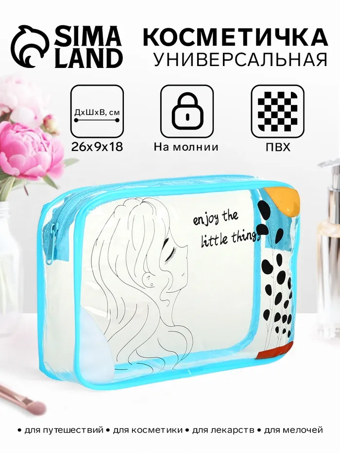 - Косметичка легко помещается в сумку или чемодан.