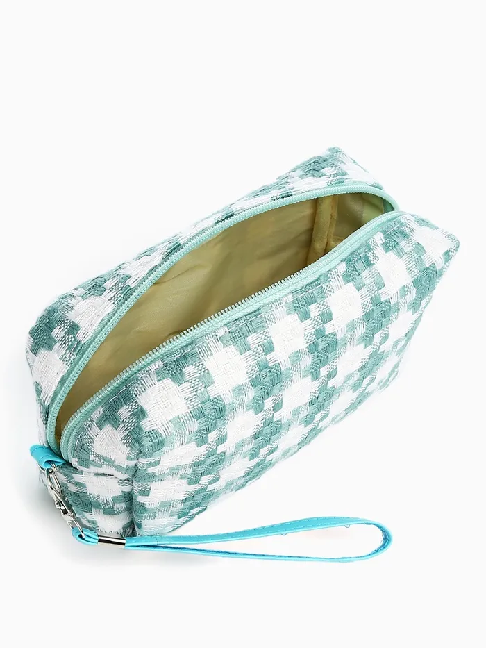 Косметичка на молнии, с ручкой, маленькая, с рисунком, белая/зелёная — Характеристики