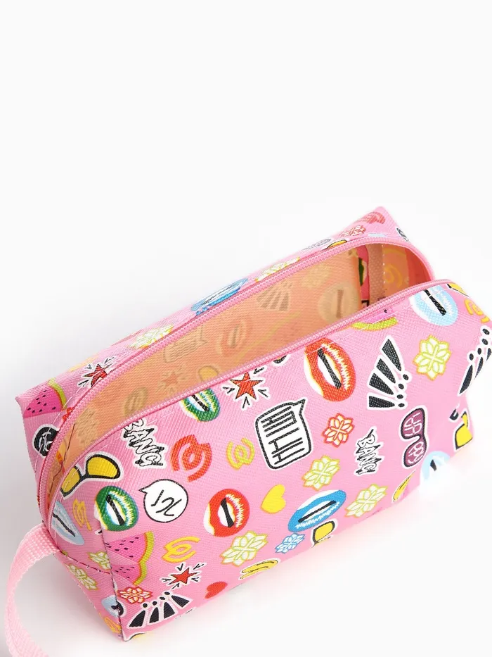 Косметичка на молнии, с ручкой, маленькая, с рисунком, розовая — Характеристики