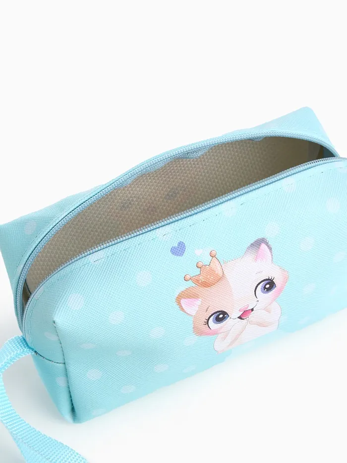Косметичка на молнии с ручкой, объёмная, маленькая, с принтом, голубая — Характеристики