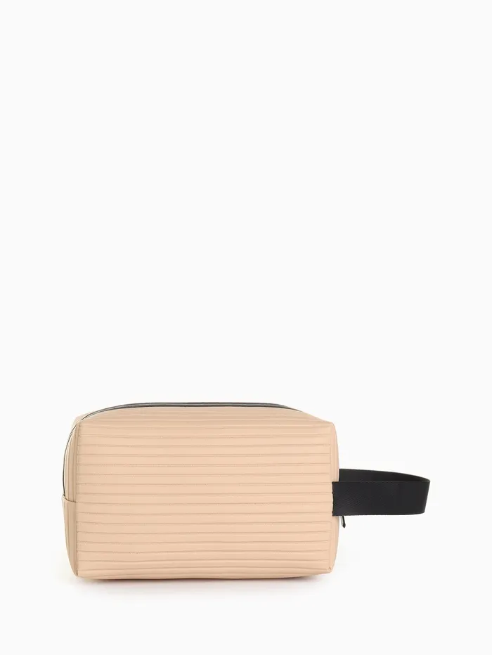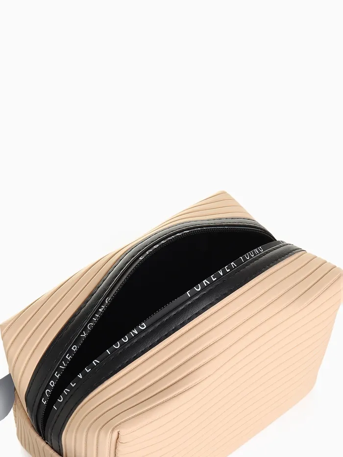 Косметичка на молнии с ручкой, объёмная, маленькая, в полоску, бежевая — Характеристики