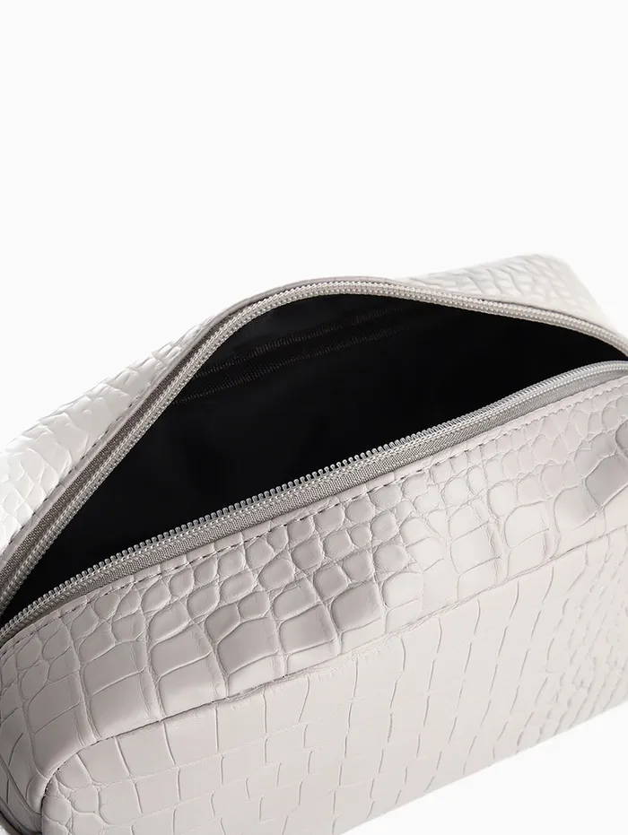 Косметичка на молнии с ручкой, объёмная, текстура, серая — Характеристики