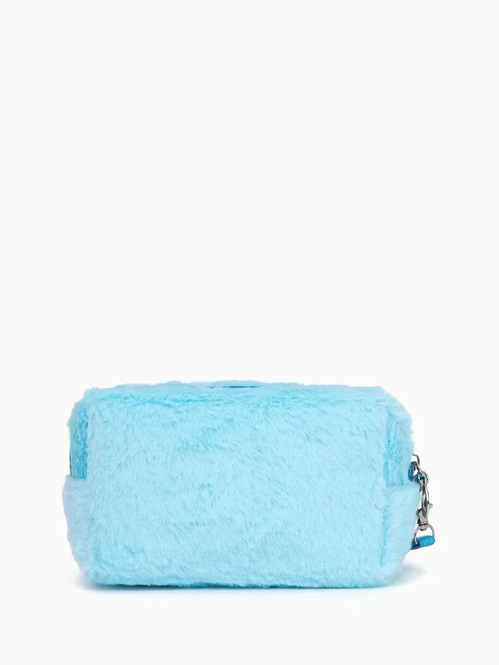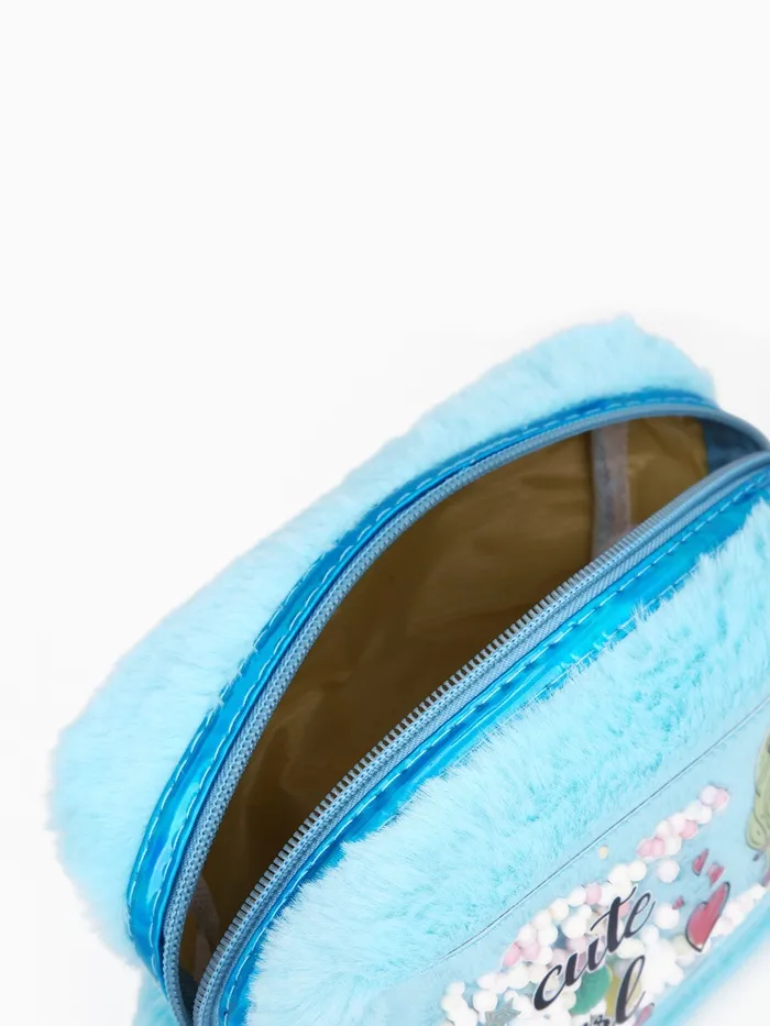 Косметичка на молнии с ручкой, плюшевая, с принтом, голубая — Характеристики