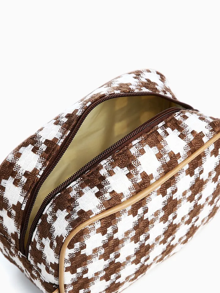 Косметичка на молнии, с ручкой, с рисунком, белая/коричневая — Характеристики
