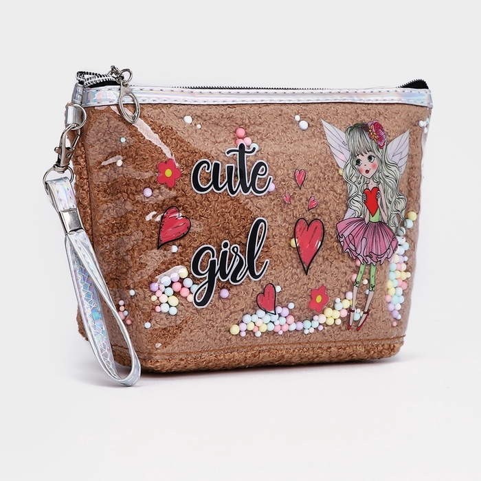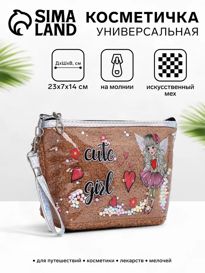 Эта коричневая косметичка из искусственного меха создает ощущение тепла и уюта. Нежный образ ангела придает аксессуару особое очарование, делая его желанным подарком для женщины или девочки. Надежная молния и удобная ручка превращают хранение мелочей в приятный ритуал.