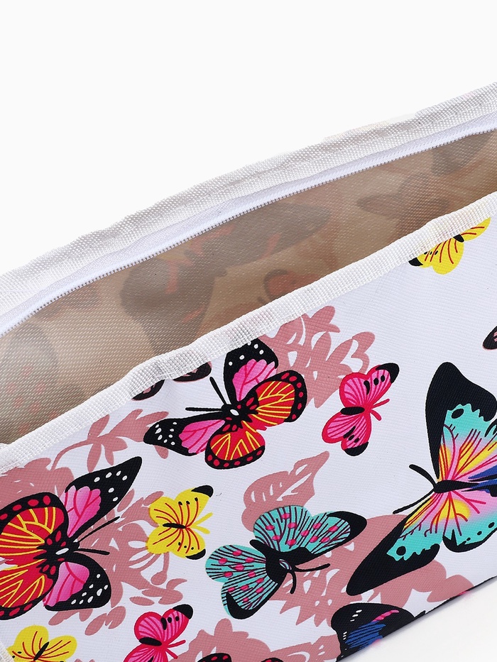 Косметичка на молнии, треугольная, большая, с рисунком «Яркие бабочки», белый — Характеристики