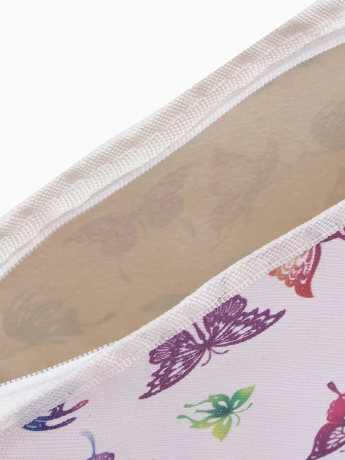 Изящная белая косметичка с принтом «Майские бабочки» — компактный аксессуар для хранения косметики и мелочей. Треугольная форма и лёгкий материал делают её удобной для ежедневного использования. Яркие бабочки на белом фоне создают весеннее настроение в любое время года.