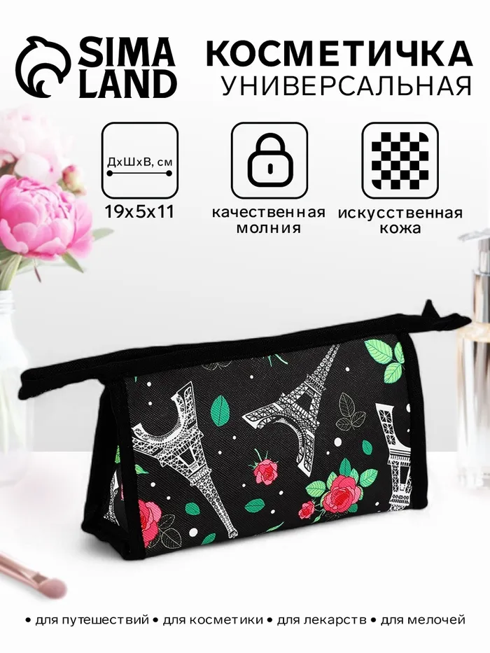 - Удобный размер 18×12×5 см — идеально для косметики, гигиенических принадлежностей или украшений.