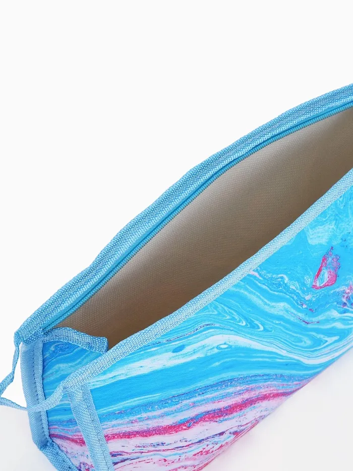 Стильная голубая косметичка с абстрактным принтом «Разводы» — компактный аксессуар для хранения мелочей. Лёгкая и удобная, она легко поместится в сумке или рюкзаке. Искусственная кожа с рисунком выглядит современно и подходит для повседневного использования.